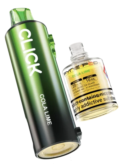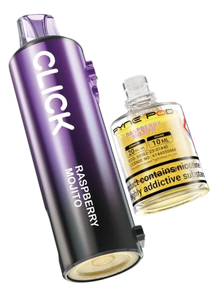 Replacement pod and container for use with both the Pyne Pod Click 50K and Pyne Pod Click 10K prefilled pod kits. Utilising a combination of a 2 ml prefilled pod and 10 ml refill container, the Pyne Pod Click replacement pod and containers are prefilled with 20 mg nicotine strength nic salt e-liquid and deliver a satisfyingly smooth mouth-to-lung (MTL) vaping experience over a built-in mesh coil construction.